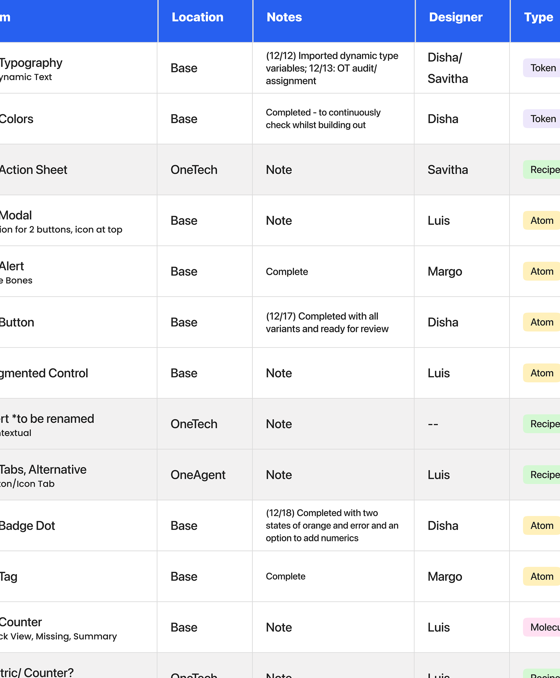I began by auditing every component that we started to use across two of our internal tools during some blue-sky fidelity work, uncovering 25+ duplicate components and multiple inconsistent UX patterns. This mapping exercise created a single source of truth for what existed, where accessibility gaps occurred, and which areas of the UI were causing the most friction for designers and engineers.